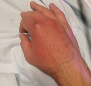 Fortunately, Boots knew the early signs of the flesh-eating disease and rushed to the hospital both times. At first, he noticed an intense pain in his hand, and within ten minutes, redness and inflammation crept up his arm to his elbow. By the time, he got to the hospital, the swelling was past his elbow. Had the infection reached his armpit he would have died. The infections would have reached his heart and get instantly pumped throughout his body ensuring death.